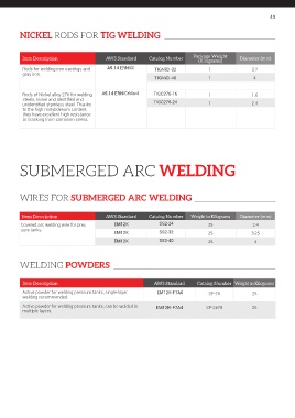 Item Description AWS Standard Catalog Number Weight in Kilograms Diameter (mm)