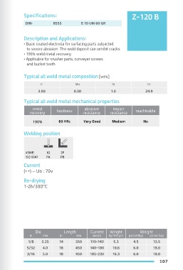 • Rutile coated electrode for high abrasion without • Basic coated electrode for surfacing parts subjected