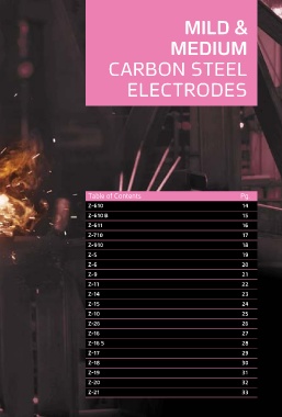 MILD & MEDIUM CARBON STEEL ELECTRODES Table of Contents Pg. Z-610 14 Z-610 B 15 Z-611 16 Z-710 17 Z-910 18 Z-5 19 Z-6 20 Z-9 21 Z-11 22 Z-14 23 Z-15 24 Z-10 25 Z-26 26 Z-16 27 Z-16 S 28 Z-17 29 Z-18 30 Z-19 31 Z-20 32 Z-21 33