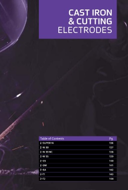 CAST IRON & CUTTING ELECTRODES Table of Contents Pg. Z-SUPER Ni 136 Z-Ni 99 137 Z-Ni 99 NC 138 Z-Ni 55 139 Z-GS 140 Z-GM 141 Z-GA 142 Z-71 143 Z-72 144