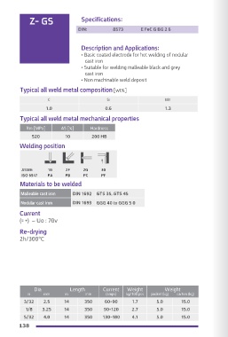 • Suitable for welding malleable black and grey • Suitable also for welding of cast iron to mild steel