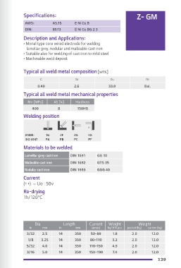 • Suitable for welding malleable black and grey • Suitable also for welding of cast iron to mild steel