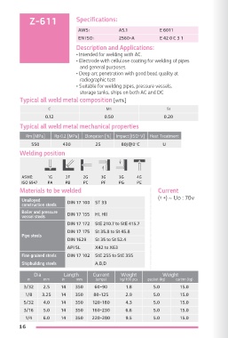 • Suitable for welding pipes, pressure vessels, Typical all weld metal composition [wt%]