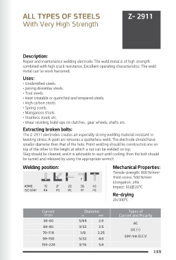 The Z-2911 electrodes creates an especially strong welding material resistant to