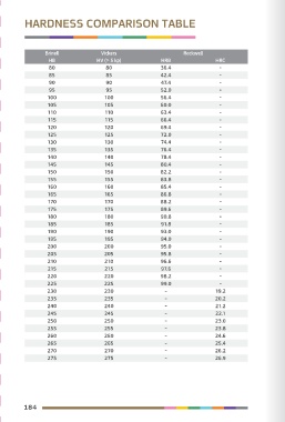 HARDNESS COMPARISON TABLE