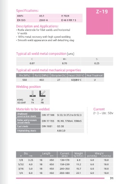 • Rutile electrode for fillet welds and horizontal • Rutile electrode for fillet welds and horizontal