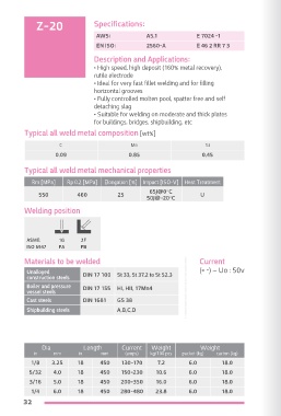 • High speed, high deposit (160% metal recovery), • Rutile electrode for fillet and horizontal V-welds