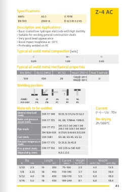 • Low hydrogen electrode for structure welding when • Basic coated low hydrogen electrode with high ductility