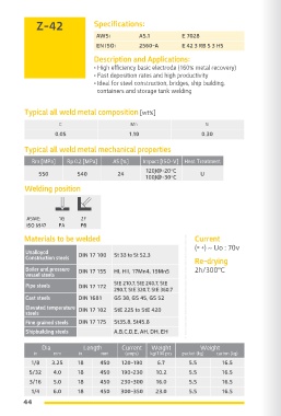 • High efficiency basic electrode (160% metal recovery) • Vertical down welding basic electrode