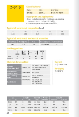 • Basic coated electrode for welding creep resisting • Low hydrogen Basic coated electrode for welding
