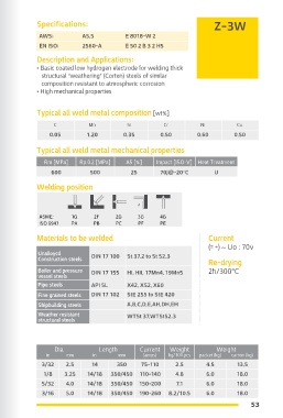 • Designed for all position welding structural “weathering” )Corten( steels of similar