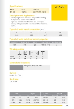 • Basic coated electrode for welding steels such • Low hydrogen basic electrode designed for welding