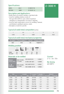 • For welding austenitic Cr- Ni steels. • Rutile-basic all position stainless steel electrode