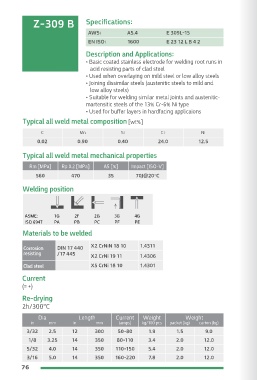 • Joining dissimilar steels (austenitic steels to mild and • Suitable for welding similar metal joints (23% Cr-12% Ni)