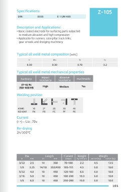 • Basic coated abrasion resistant electrode • Basic coated electrode for surfacing parts subjected